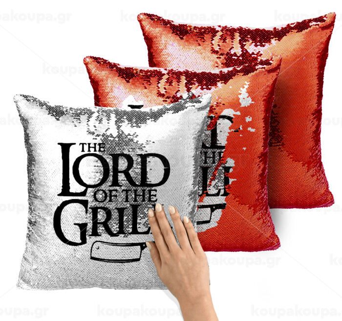 The Lord of the Grill, Μαξιλάρι καναπέ Μαγικό Κόκκινο με πούλιες 40x40cm περιέχεται το γέμισμα