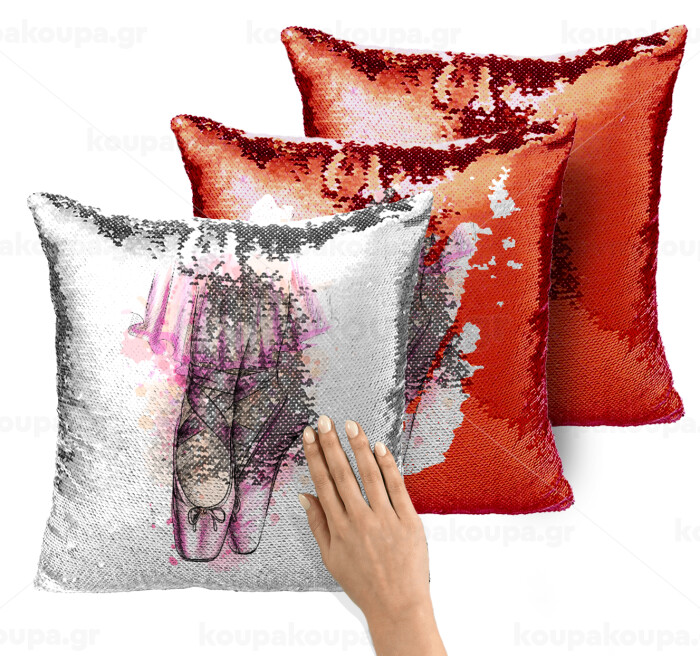 Ballerina shoes, Μαξιλάρι καναπέ Μαγικό Κόκκινο με πούλιες 40x40cm περιέχεται το γέμισμα