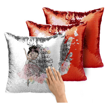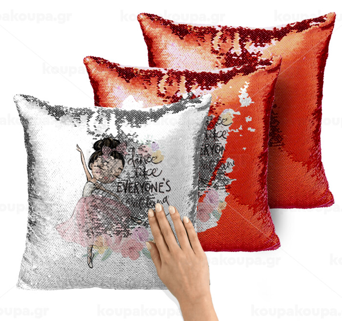 Dance Like everyone's watching, Μαξιλάρι καναπέ Μαγικό Κόκκινο με πούλιες 40x40cm περιέχεται το γέμισμα