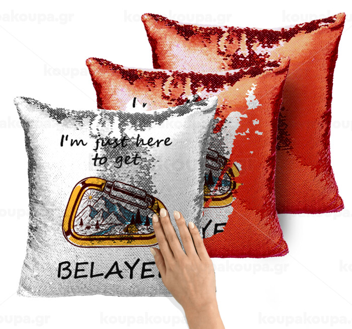 I'm just here to get Belayed, Μαξιλάρι καναπέ Μαγικό Κόκκινο με πούλιες 40x40cm περιέχεται το γέμισμα