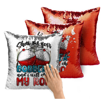 Show me your bobbers and i will show my rod , Μαξιλάρι καναπέ Μαγικό Κόκκινο με πούλιες 40x40cm περιέχεται το γέμισμα