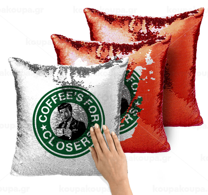 Coffee's for closers, Μαξιλάρι καναπέ Μαγικό Κόκκινο με πούλιες 40x40cm περιέχεται το γέμισμα