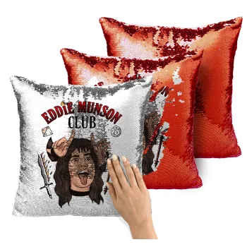 Eddie Munson, Hellfire CLub, Stranger Things, Μαξιλάρι καναπέ Μαγικό Κόκκινο με πούλιες 40x40cm περιέχεται το γέμισμα