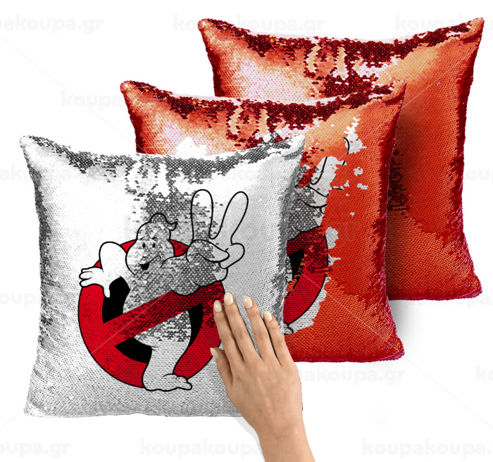 Ghostbusters, Μαξιλάρι καναπέ Μαγικό Κόκκινο με πούλιες 40x40cm περιέχεται το γέμισμα