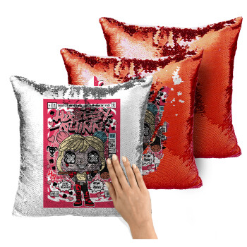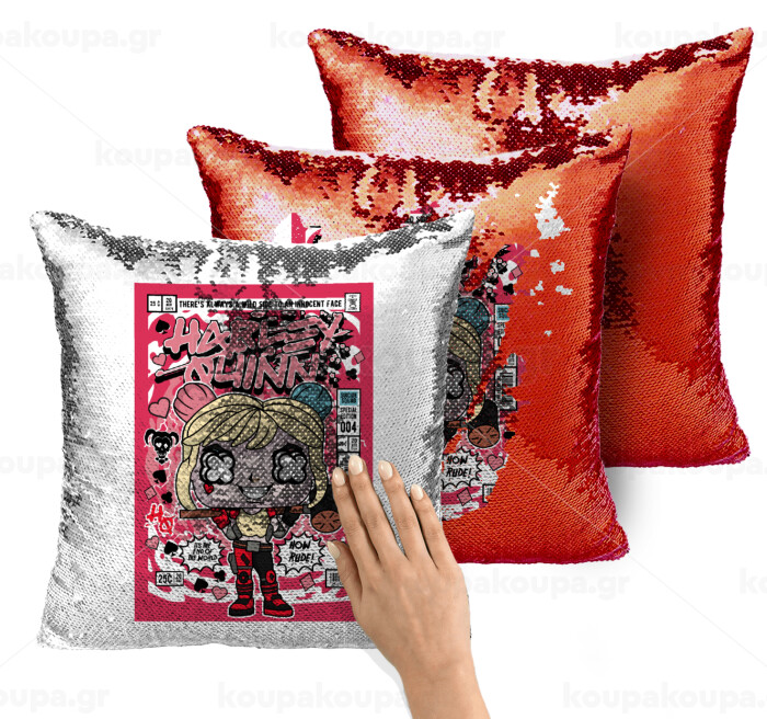 Harley Quinn (Χάρλεϊ Κουίν), Μαξιλάρι καναπέ Μαγικό Κόκκινο με πούλιες 40x40cm περιέχεται το γέμισμα