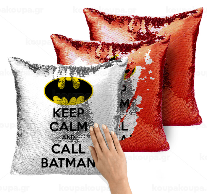 KEEP CALM & Call BATMAN, Μαξιλάρι καναπέ Μαγικό Κόκκινο με πούλιες 40x40cm περιέχεται το γέμισμα