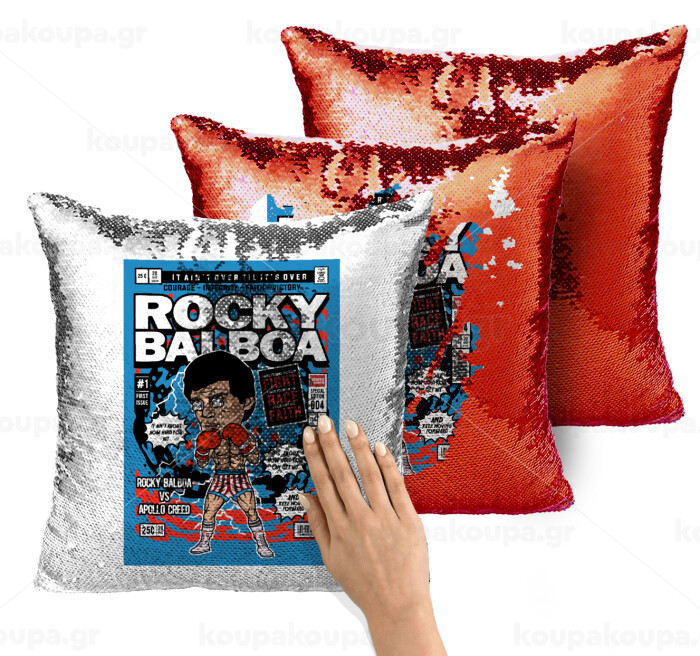 Rocky Balboa, Μαξιλάρι καναπέ Μαγικό Κόκκινο με πούλιες 40x40cm περιέχεται το γέμισμα
