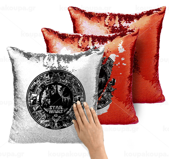 Star Wars Disk, Μαξιλάρι καναπέ Μαγικό Κόκκινο με πούλιες 40x40cm περιέχεται το γέμισμα