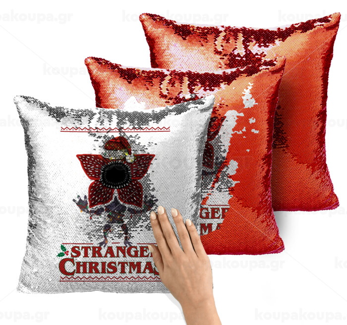 Stranger Things Christmas, Μαξιλάρι καναπέ Μαγικό Κόκκινο με πούλιες 40x40cm περιέχεται το γέμισμα