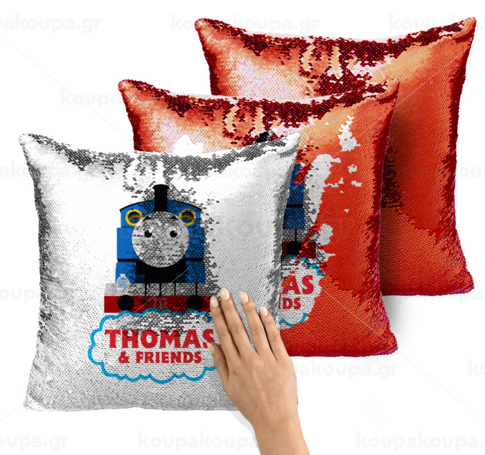 Τόμας το τρενάκι, Μαξιλάρι καναπέ Μαγικό Κόκκινο με πούλιες 40x40cm περιέχεται το γέμισμα