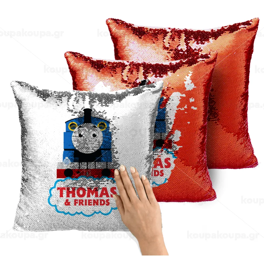 Τόμας το τρενάκι, Μαξιλάρι καναπέ Μαγικό Κόκκινο με πούλιες 40x40cm περιέχεται το γέμισμα