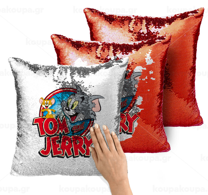 Tom and Jerry, Μαξιλάρι καναπέ Μαγικό Κόκκινο με πούλιες 40x40cm περιέχεται το γέμισμα