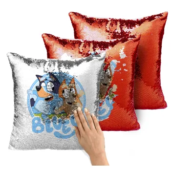 Μπλε, Μαξιλάρι καναπέ Μαγικό Κόκκινο με πούλιες 40x40cm περιέχεται το γέμισμα