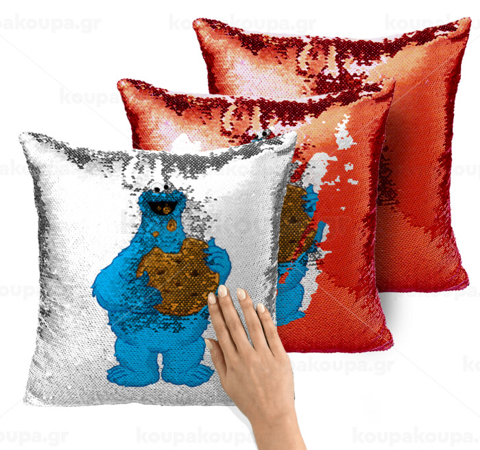 Cookie Monster, Μαξιλάρι καναπέ Μαγικό Κόκκινο με πούλιες 40x40cm περιέχεται το γέμισμα