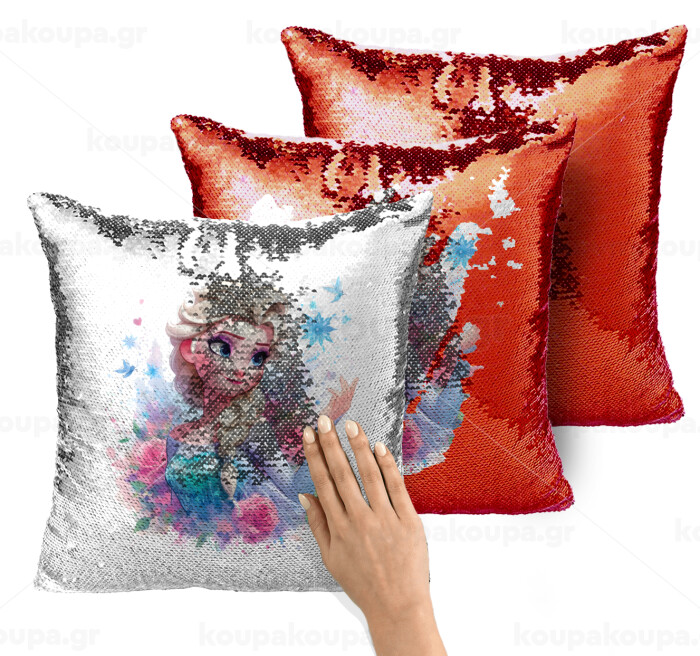 Elsa Princess, Μαξιλάρι καναπέ Μαγικό Κόκκινο με πούλιες 40x40cm περιέχεται το γέμισμα