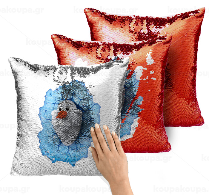 Frozen Olaf, Μαξιλάρι καναπέ Μαγικό Κόκκινο με πούλιες 40x40cm περιέχεται το γέμισμα