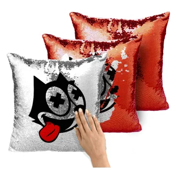 helix the cat, Μαξιλάρι καναπέ Μαγικό Κόκκινο με πούλιες 40x40cm περιέχεται το γέμισμα