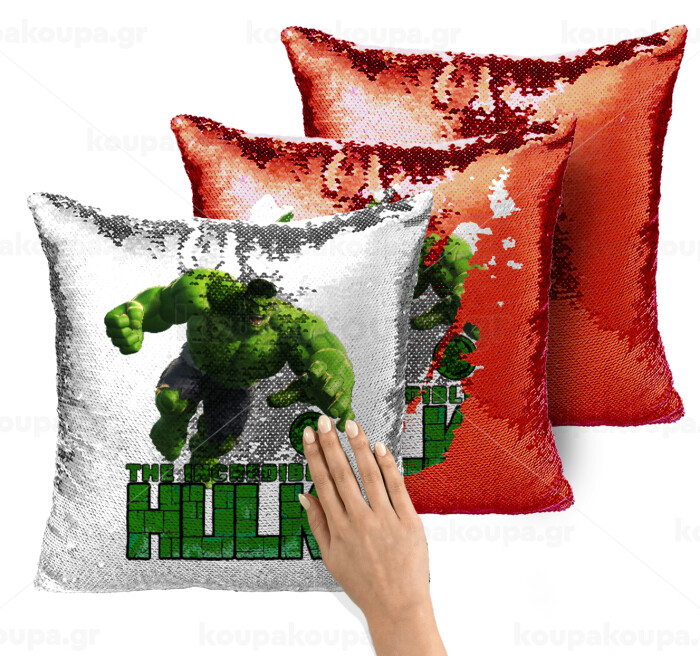 Hulk, Μαξιλάρι καναπέ Μαγικό Κόκκινο με πούλιες 40x40cm περιέχεται το γέμισμα