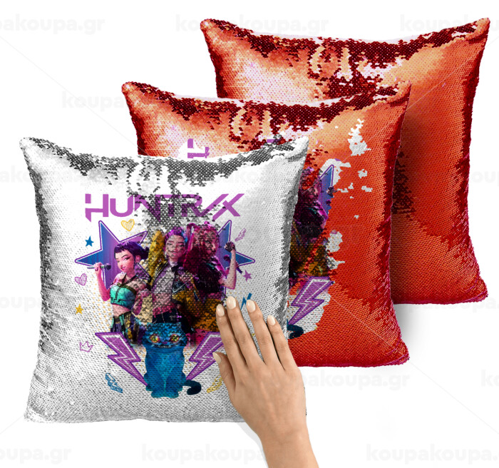 Huntrix K-pop series, Μαξιλάρι καναπέ Μαγικό Κόκκινο με πούλιες 40x40cm περιέχεται το γέμισμα