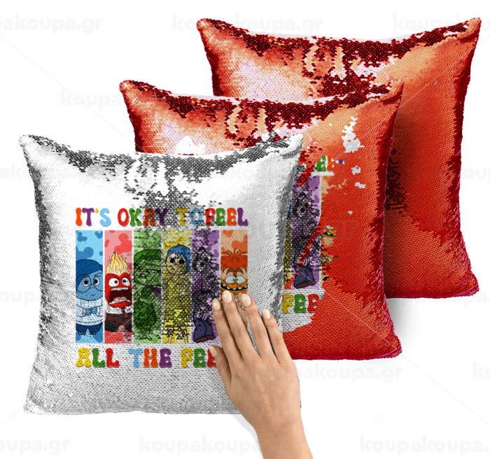 Inside Out It's Okay To Feel All The Feels , Μαξιλάρι καναπέ Μαγικό Κόκκινο με πούλιες 40x40cm περιέχεται το γέμισμα
