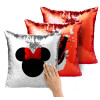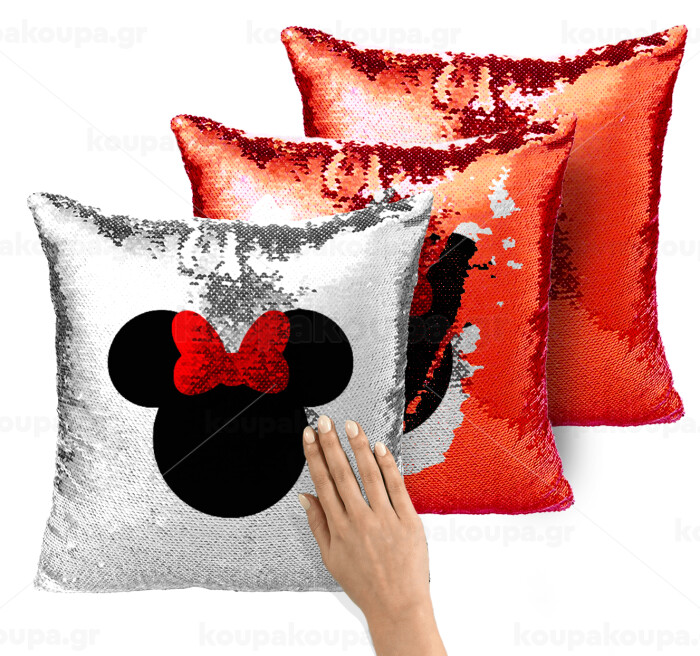 Minnie head, Μαξιλάρι καναπέ Μαγικό Κόκκινο με πούλιες 40x40cm περιέχεται το γέμισμα