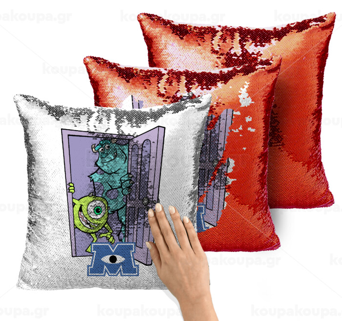 Monster inc, Μαξιλάρι καναπέ Μαγικό Κόκκινο με πούλιες 40x40cm περιέχεται το γέμισμα