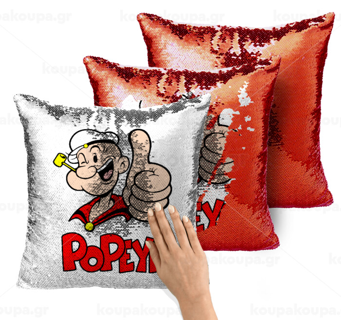 Popeye the sailor man, Μαξιλάρι καναπέ Μαγικό Κόκκινο με πούλιες 40x40cm περιέχεται το γέμισμα