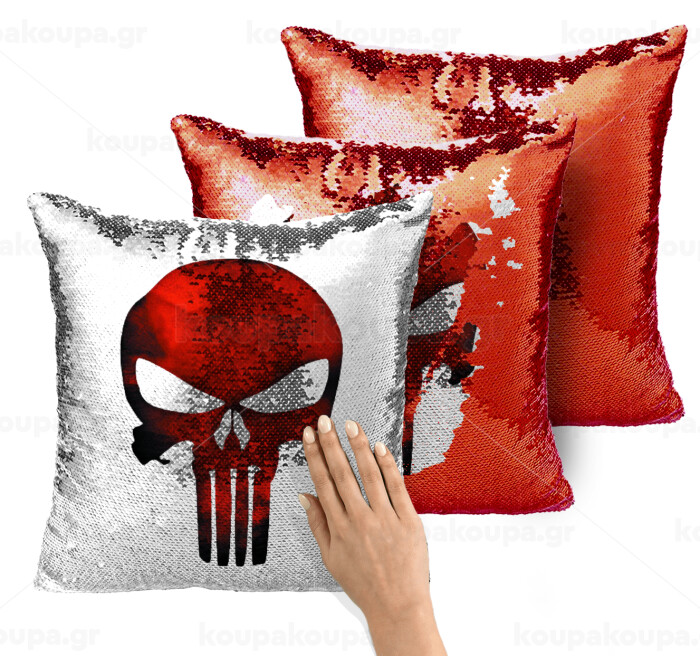 Red skull, Μαξιλάρι καναπέ Μαγικό Κόκκινο με πούλιες 40x40cm περιέχεται το γέμισμα