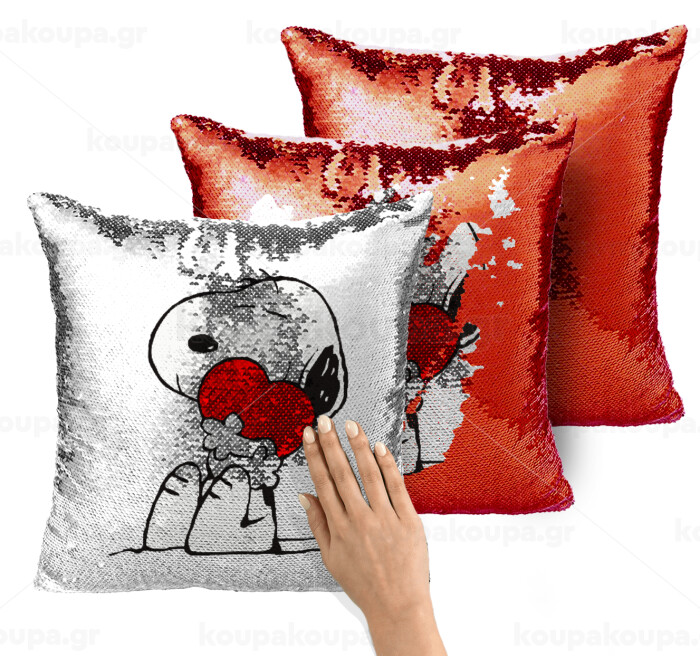 Snoopy, Μαξιλάρι καναπέ Μαγικό Κόκκινο με πούλιες 40x40cm περιέχεται το γέμισμα