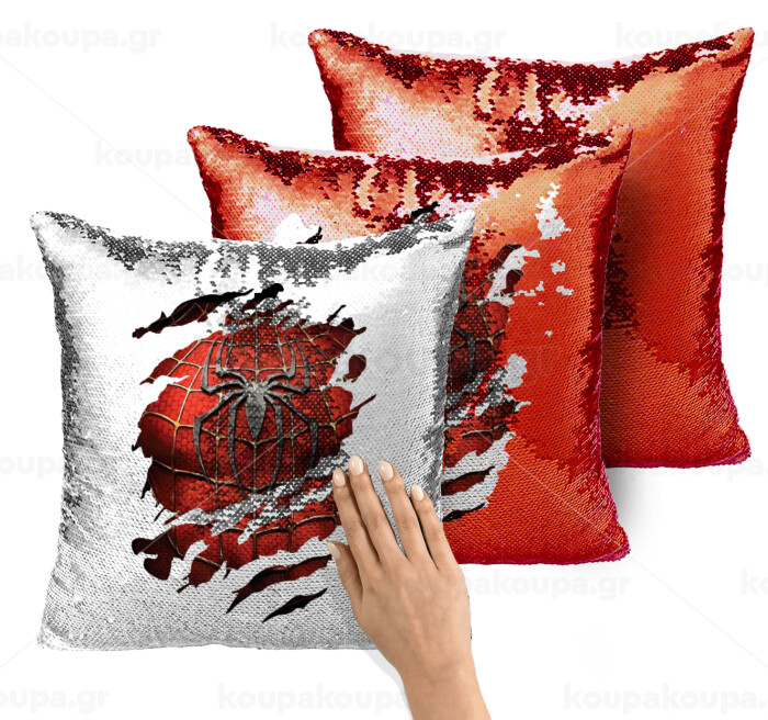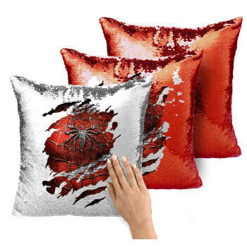 Spiderman cracked, Μαξιλάρι καναπέ Μαγικό Κόκκινο με πούλιες 40x40cm περιέχεται το γέμισμα