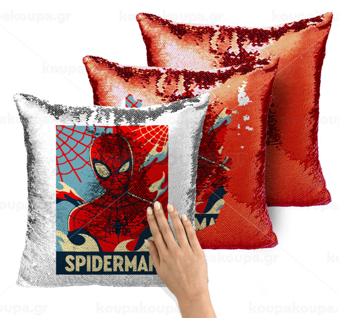 Spiderman kid, Μαξιλάρι καναπέ Μαγικό Κόκκινο με πούλιες 40x40cm περιέχεται το γέμισμα