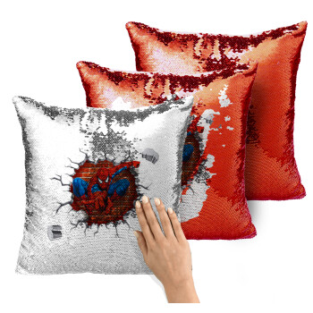 Spiderman wall, Μαξιλάρι καναπέ Μαγικό Κόκκινο με πούλιες 40x40cm περιέχεται το γέμισμα