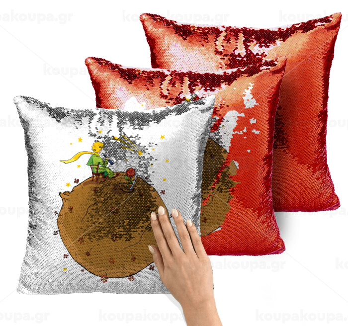 The Little prince planet, Μαξιλάρι καναπέ Μαγικό Κόκκινο με πούλιες 40x40cm περιέχεται το γέμισμα