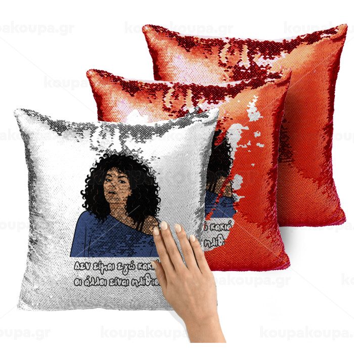 Δεν είμαι εγώ κακιά, Μαξιλάρι καναπέ Μαγικό Κόκκινο με πούλιες 40x40cm περιέχεται το γέμισμα