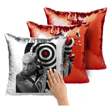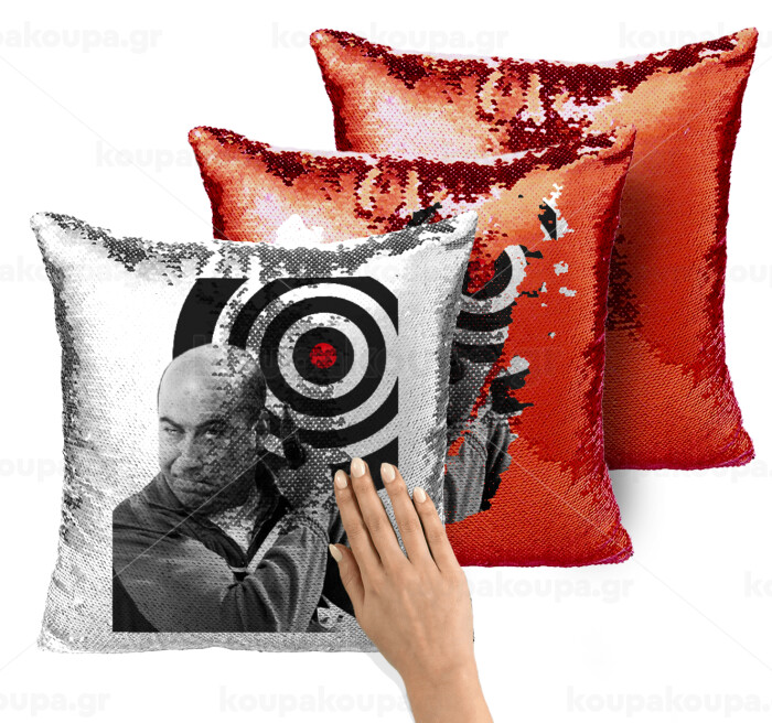 Θου Βου Φαλακρός Πράκτωρ, Μαξιλάρι καναπέ Μαγικό Κόκκινο με πούλιες 40x40cm περιέχεται το γέμισμα