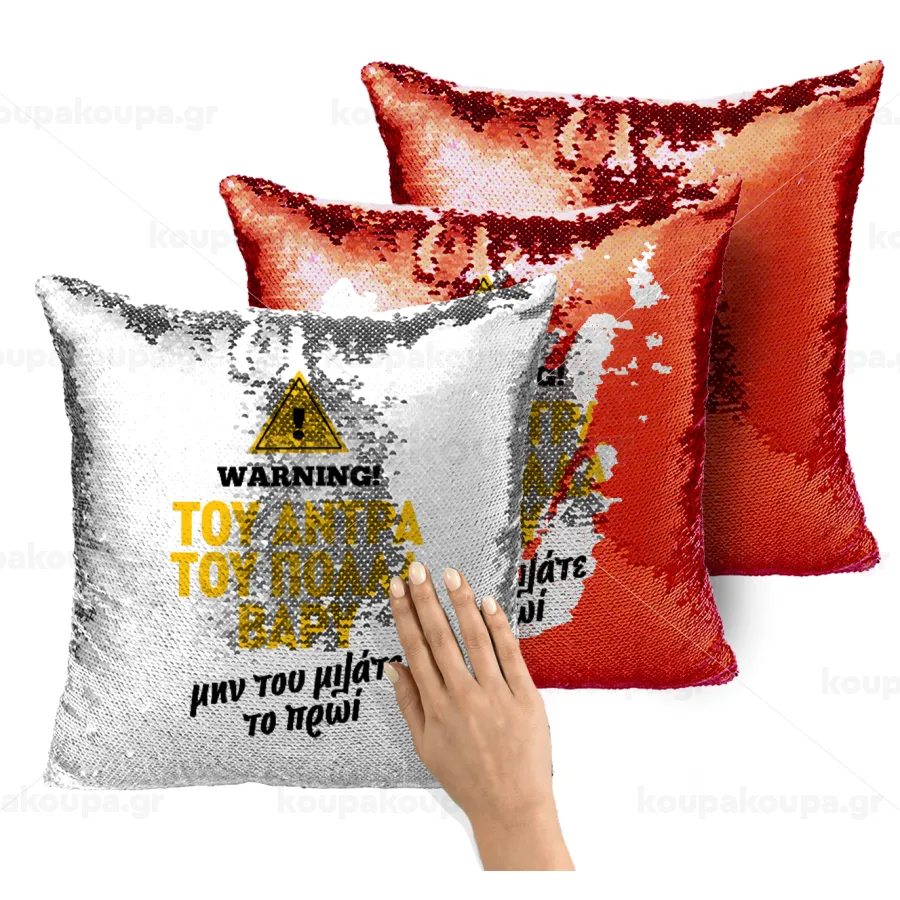 Του άντρα του πολλά βαρύ, Μαξιλάρι καναπέ Μαγικό Κόκκινο με πούλιες 40x40cm περιέχεται το γέμισμα