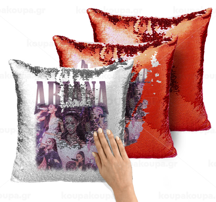 Ariana Grande, Μαξιλάρι καναπέ Μαγικό Κόκκινο με πούλιες 40x40cm περιέχεται το γέμισμα