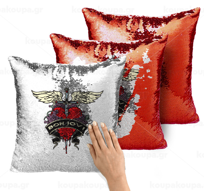Bon Jovi, Μαξιλάρι καναπέ Μαγικό Κόκκινο με πούλιες 40x40cm περιέχεται το γέμισμα
