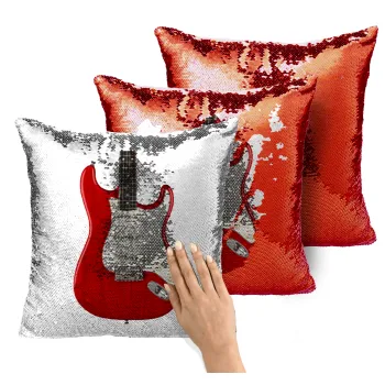 Guitar stratocaster, Μαξιλάρι καναπέ Μαγικό Κόκκινο με πούλιες 40x40cm περιέχεται το γέμισμα