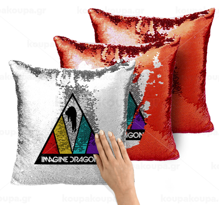 Imagine Dragons, Μαξιλάρι καναπέ Μαγικό Κόκκινο με πούλιες 40x40cm περιέχεται το γέμισμα