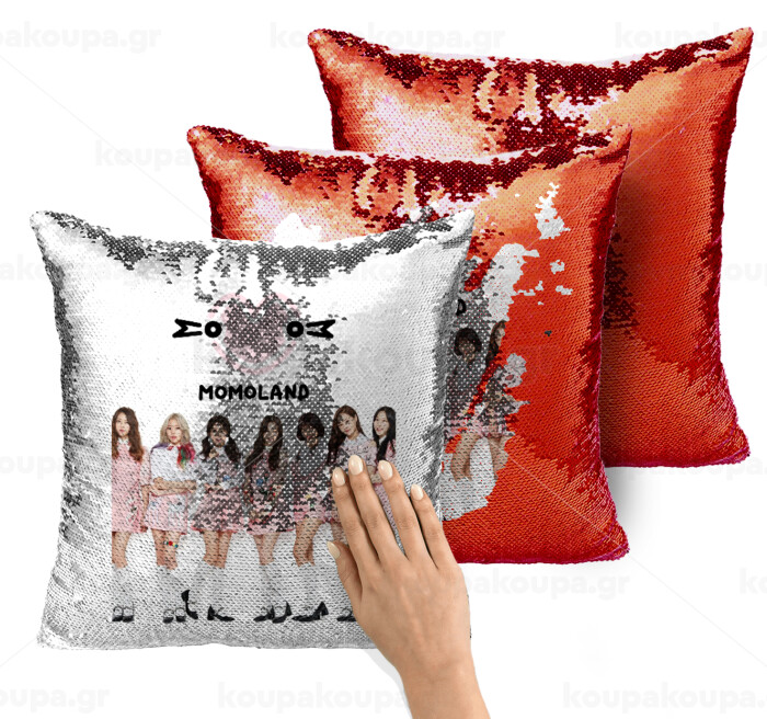 Momoland pink, Μαξιλάρι καναπέ Μαγικό Κόκκινο με πούλιες 40x40cm περιέχεται το γέμισμα