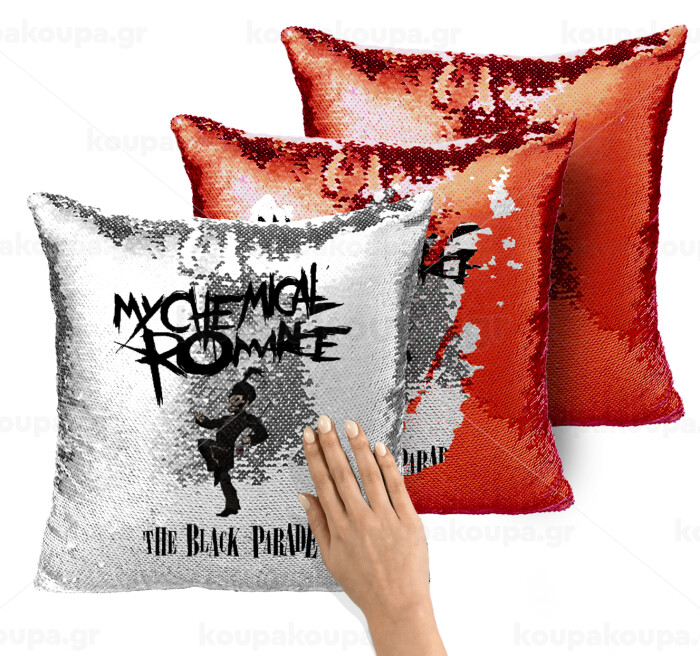 My Chemical Romance Black Parade, Μαξιλάρι καναπέ Μαγικό Κόκκινο με πούλιες 40x40cm περιέχεται το γέμισμα