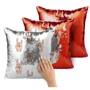 Rock hands, Μαξιλάρι καναπέ Μαγικό Κόκκινο με πούλιες 40x40cm περιέχεται το γέμισμα