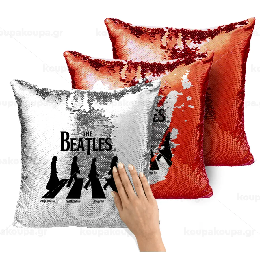 The Beatles, Abbey Road, Μαξιλάρι καναπέ Μαγικό Κόκκινο με πούλιες 40x40cm περιέχεται το γέμισμα