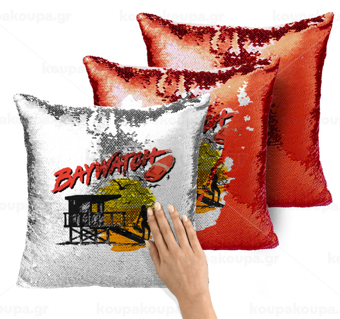 Baywatch, Μαξιλάρι καναπέ Μαγικό Κόκκινο με πούλιες 40x40cm περιέχεται το γέμισμα