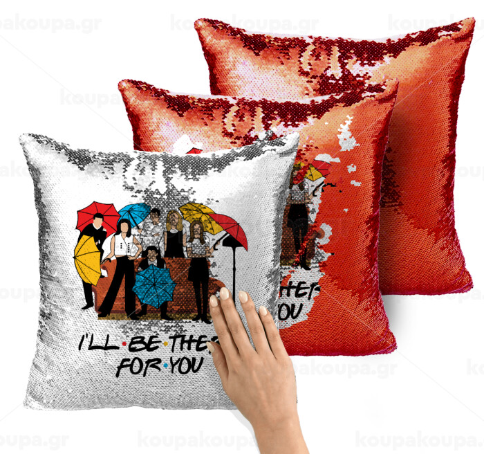 Friends cover, Μαξιλάρι καναπέ Μαγικό Κόκκινο με πούλιες 40x40cm περιέχεται το γέμισμα