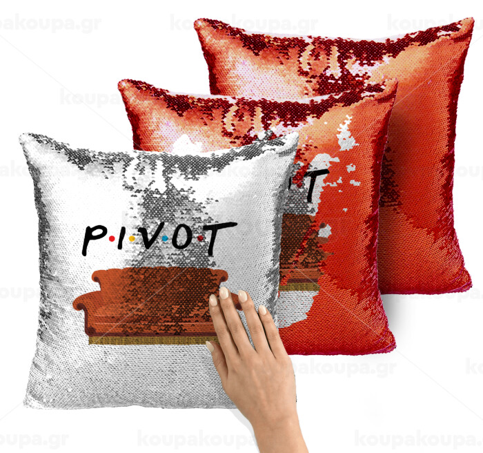 Friends Pivot, Μαξιλάρι καναπέ Μαγικό Κόκκινο με πούλιες 40x40cm περιέχεται το γέμισμα