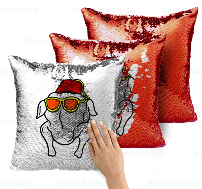 Friends turkey, Μαξιλάρι καναπέ Μαγικό Κόκκινο με πούλιες 40x40cm περιέχεται το γέμισμα