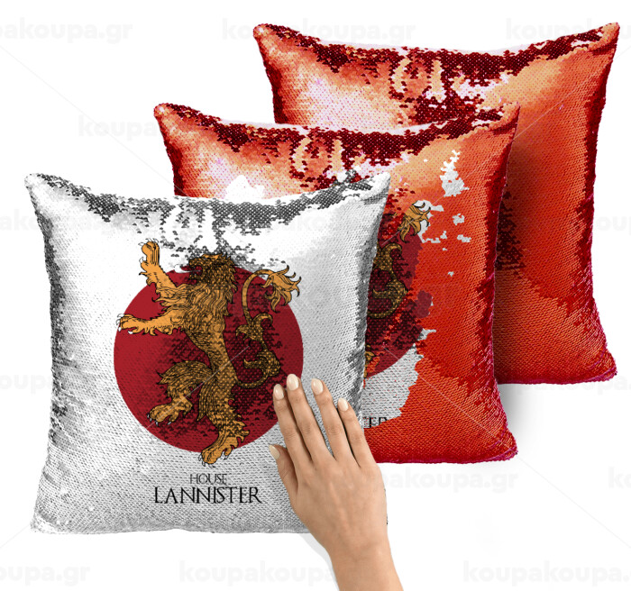 House Lannister GOT, Μαξιλάρι καναπέ Μαγικό Κόκκινο με πούλιες 40x40cm περιέχεται το γέμισμα