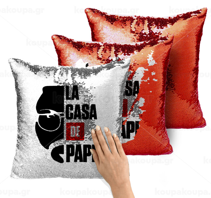 La casa de papel, Μαξιλάρι καναπέ Μαγικό Κόκκινο με πούλιες 40x40cm περιέχεται το γέμισμα